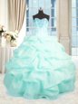 Home >  Quinceanera Dresses >  Cute Quinceanera Dresses > Exceptional Aqua Blue Sleeveless Organza Lace Up Quinceanera Dress for Military Ball and Sweet 16 and Quinceanera