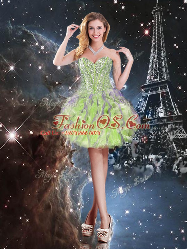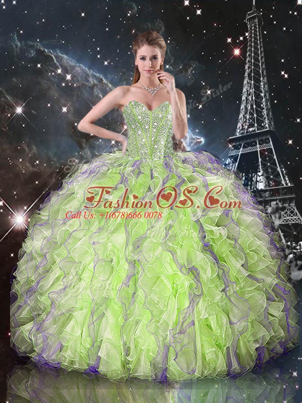 Exceptional Ball Gowns Sweetheart Sleeveless Organza Floor Length Lace Up Beading and Ruffles Sweet 16 Quinceanera Dress