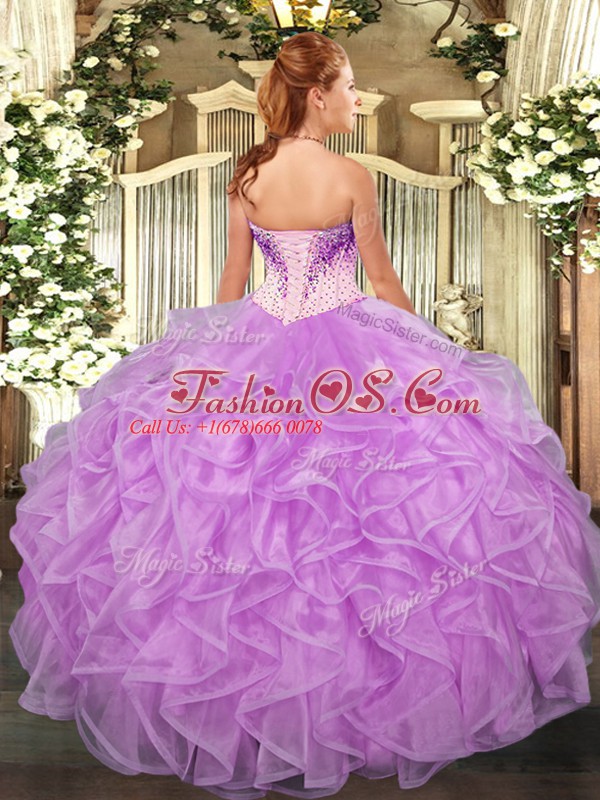 Exceptional Ball Gowns Vestidos de Quinceanera Lilac Sweetheart Organza Sleeveless Floor Length Lace Up