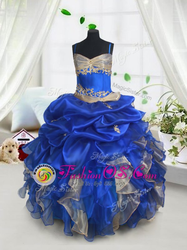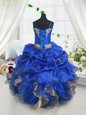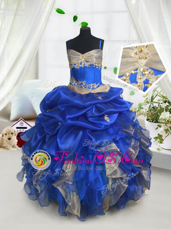 Home >  Special Occasion Dresses >  Mini Quinceanera Dresses > Exceptional Blue and Champagne Lace Up Flower Girl Dresses for Less Beading and Ruffles and Pick Ups Sleeveless Floor Length