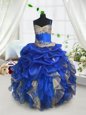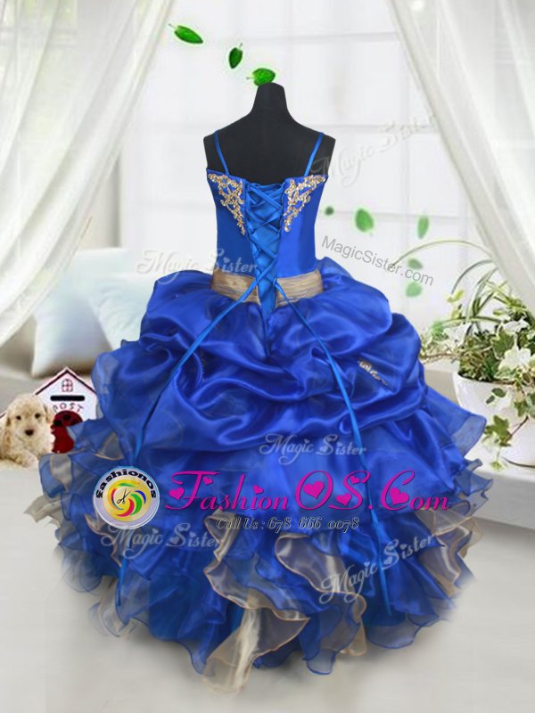 Exceptional Blue and Champagne Lace Up Flower Girl Dresses for Less Beading and Ruffles and Pick Ups Sleeveless Floor Length