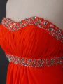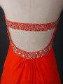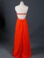 Exceptional Coral Red Chiffon Backless Strapless Sleeveless Floor Length Homecoming Gowns Beading