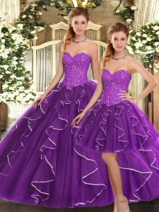 Home >  Quinceanera Dresses >  Detachable Quinceanera Skirts > Exceptional Eggplant Purple Sweetheart Lace Up Beading and Ruffles 15 Quinceanera Dress Sleeveless