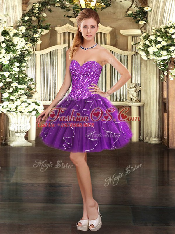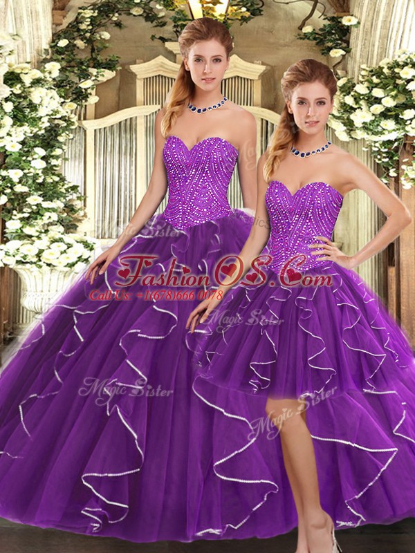 Exceptional Eggplant Purple Sweetheart Lace Up Beading and Ruffles 15 Quinceanera Dress Sleeveless