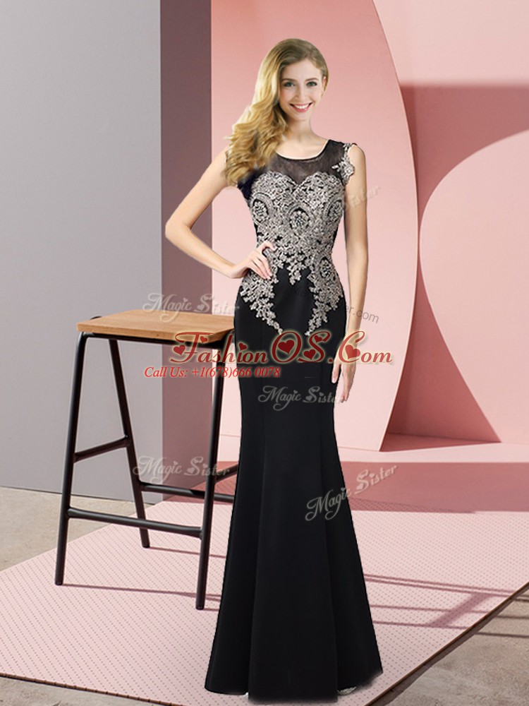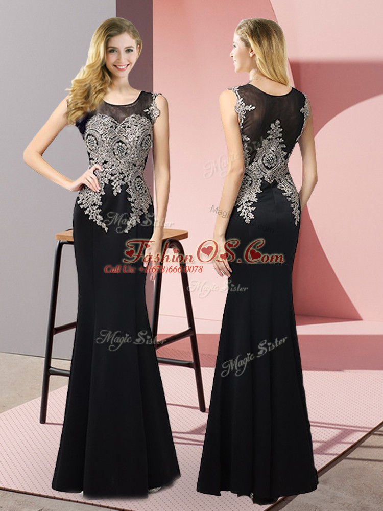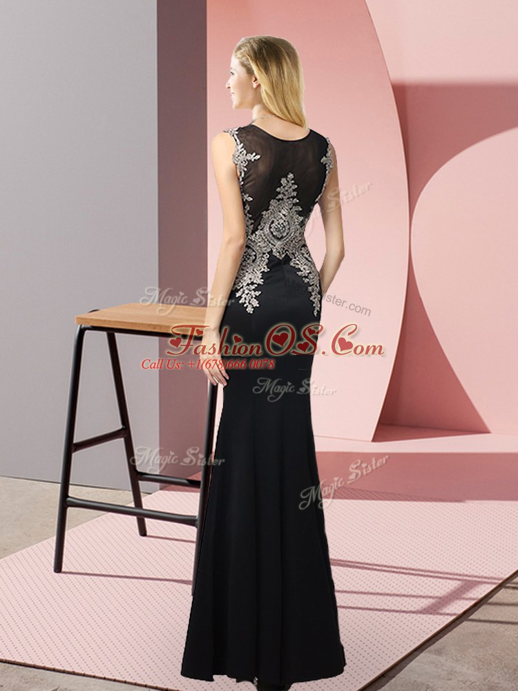Exceptional Floor Length Black Scoop Sleeveless Side Zipper
