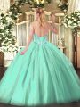 Exceptional Floor Length Lace Up Quince Ball Gowns Lavender for Military Ball and Sweet 16 and Quinceanera with Beading