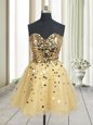 Home >  Prom Dresses >  Perfect Prom Dresses > Exceptional Gold Sleeveless Sequins Mini Length Prom Gown