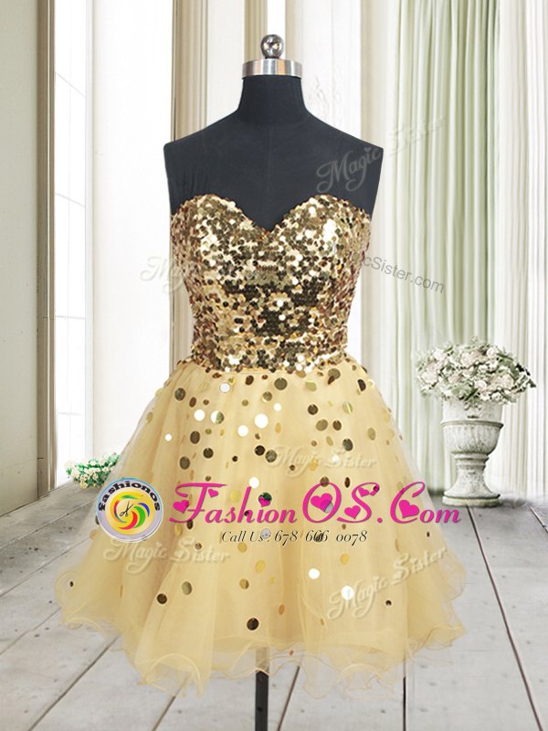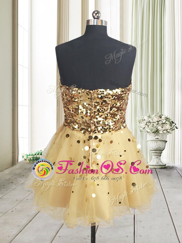 Exceptional Gold Sleeveless Sequins Mini Length Prom Gown