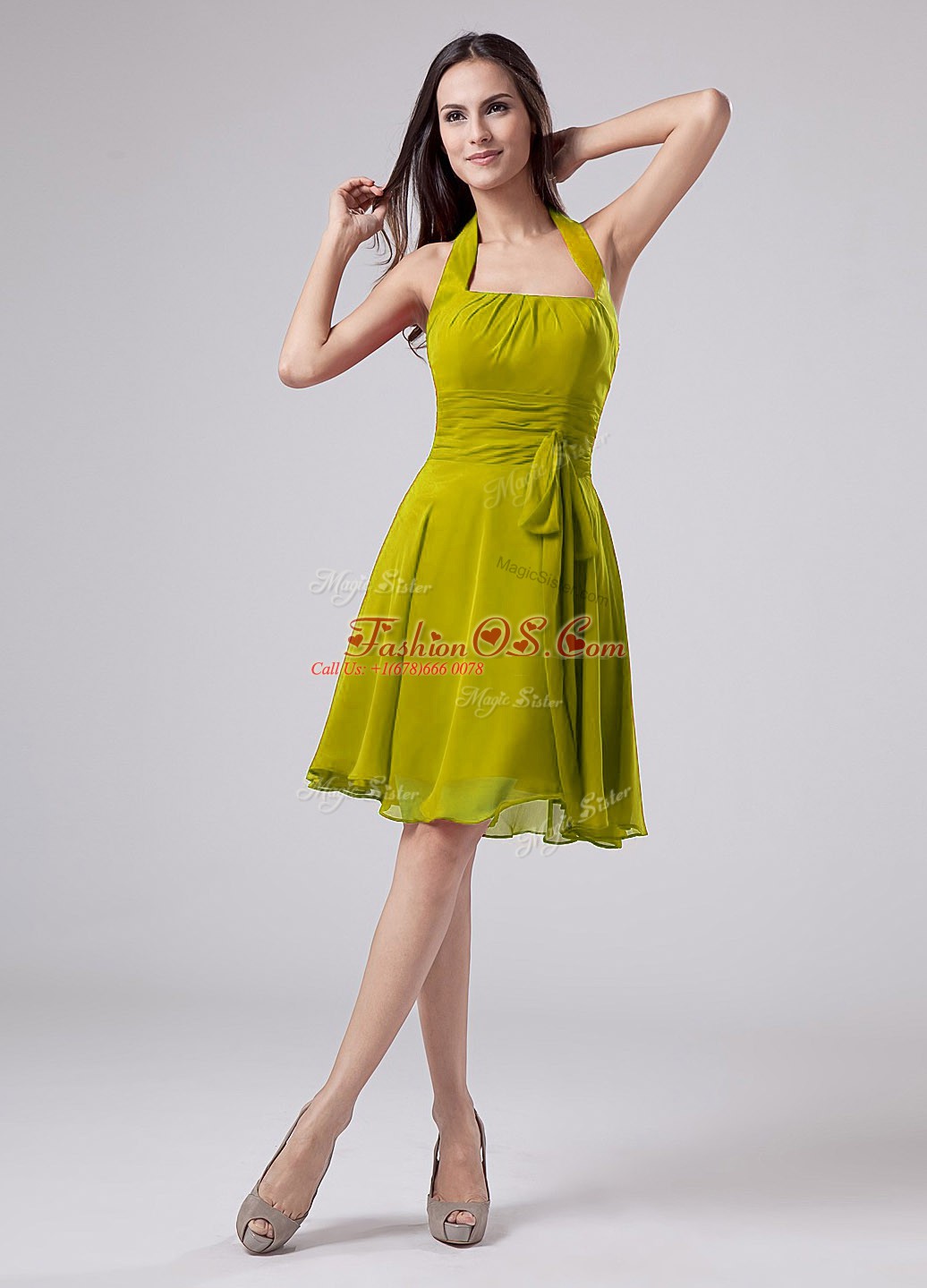 Exceptional Halter Top Sleeveless Zipper Mother Of The Bride Dress Olive Green Chiffon