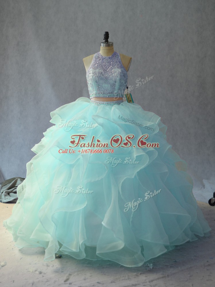 Exceptional Light Blue Backless Sweet 16 Dresses Beading and Ruffles Sleeveless Floor Length