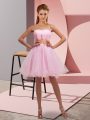 Exceptional Mini Length Baby Pink Womens Party Dresses Organza Sleeveless Beading and Ruching