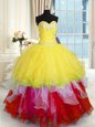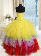 Exceptional Multi-color Sleeveless Floor Length Beading and Ruffles Lace Up Sweet 16 Quinceanera Dress