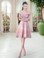 Exceptional Pink Sleeveless Knee Length Lace Zipper Prom Gown
