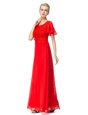 Home >  Prom Dresses >  Sexy Prom Dresses > Exceptional Red Scoop Backless Beading and Appliques Prom Dress Short Sleeves