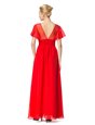 Exceptional Red Scoop Backless Beading and Appliques Prom Dress Short Sleeves