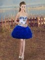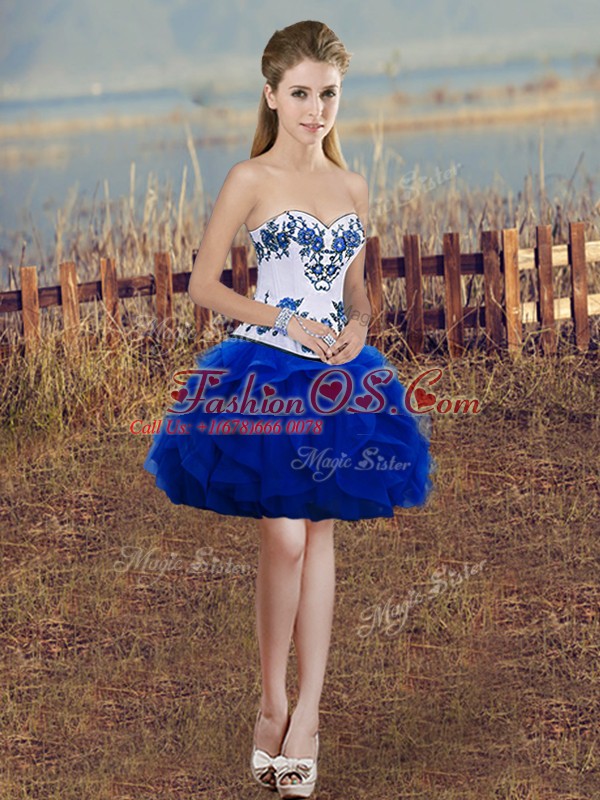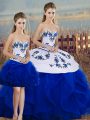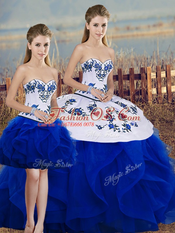 Exceptional Royal Blue Three Pieces Embroidery and Ruffles and Bowknot Sweet 16 Dresses Lace Up Tulle Sleeveless Floor Length