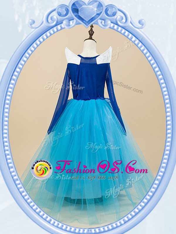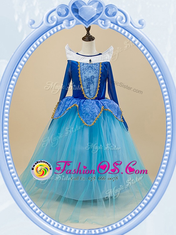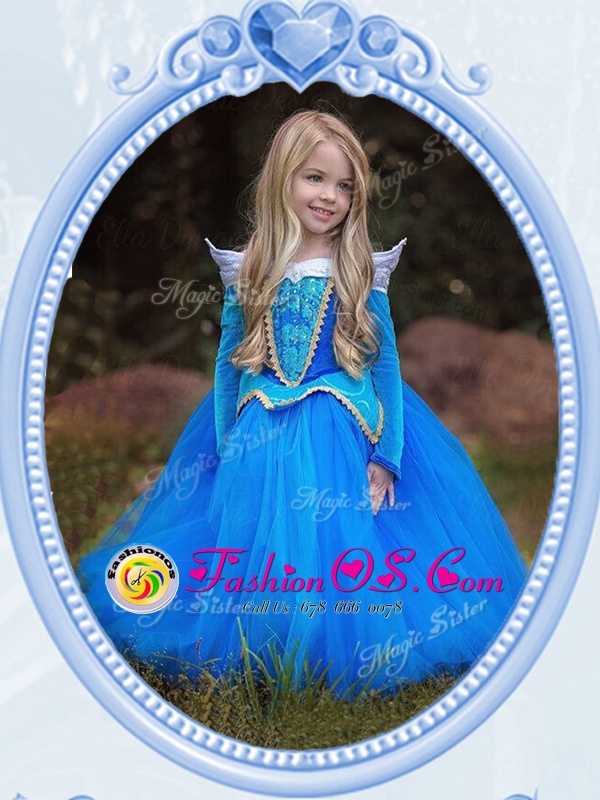 Home >  Special Occasion Dresses >  Cheap Flower Girl Dresses > Exceptional Scoop Baby Blue Ball Gowns Beading and Embroidery Flower Girl Dresses Side Zipper Tulle Long Sleeves Floor Length