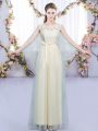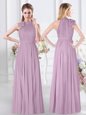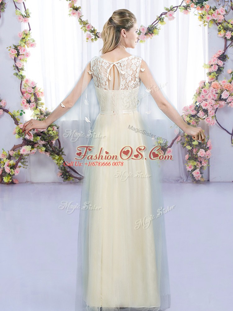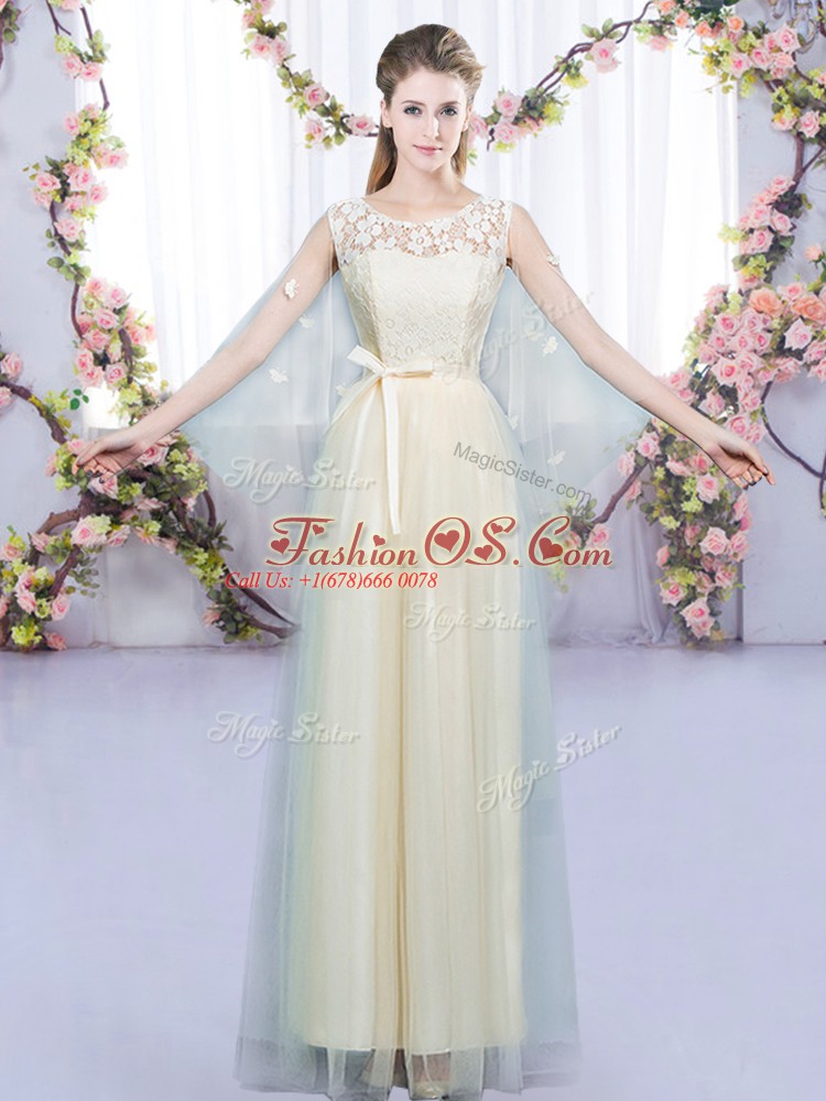 Exceptional Scoop Sleeveless Tulle Bridesmaid Gown Lace and Bowknot Lace Up