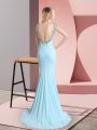 Home >  Prom Dresses >  Plus Size Prom Dresses > Exceptional Sleeveless Chiffon Sweep Train Backless Prom Dress in Aqua Blue with Beading