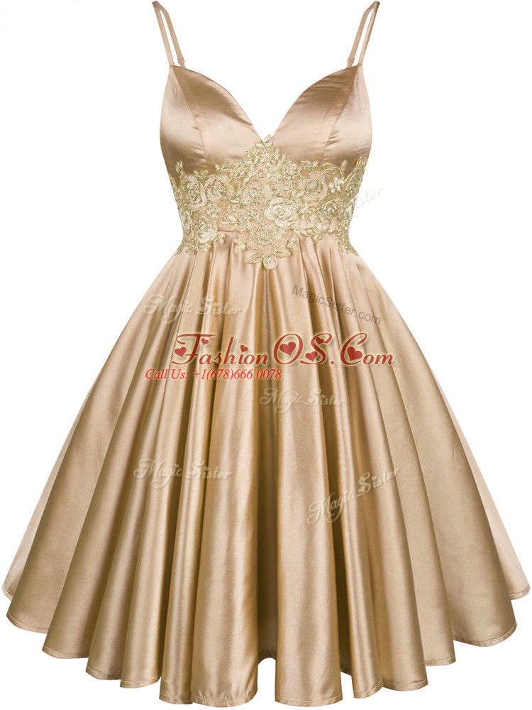Exceptional Sleeveless Elastic Woven Satin Knee Length Lace Up Quinceanera Court of Honor Dress in Champagne with Lace