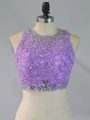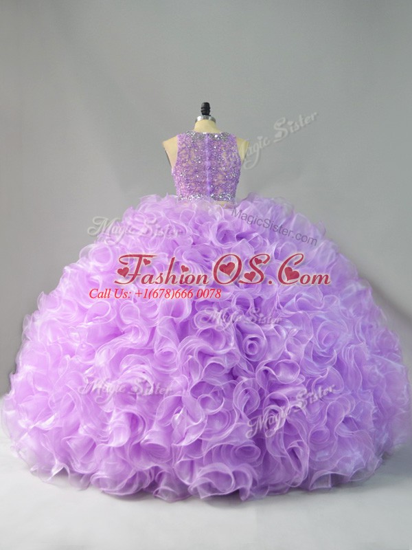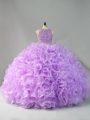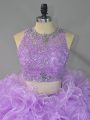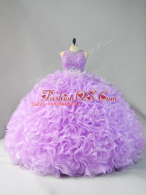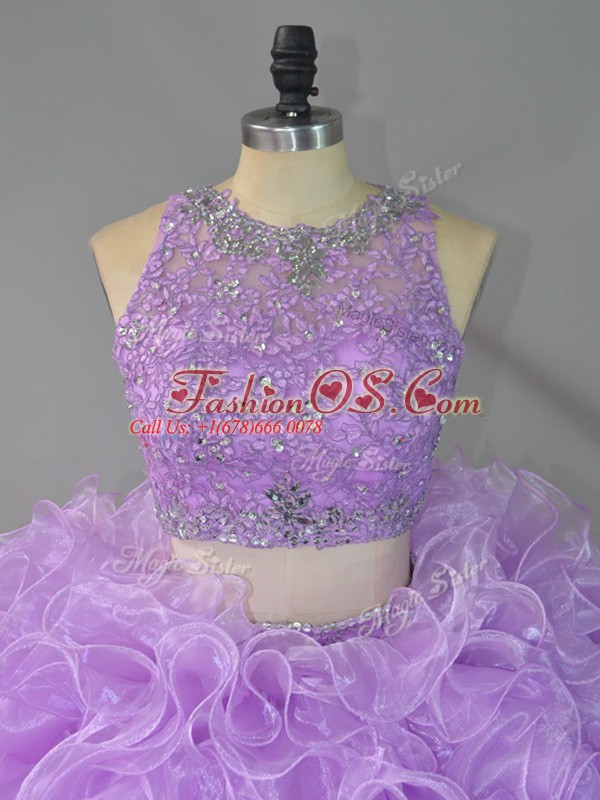 Exceptional Sleeveless Floor Length Beading and Ruffles Zipper Sweet 16 Dress with Lavender