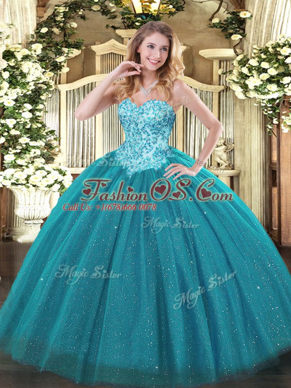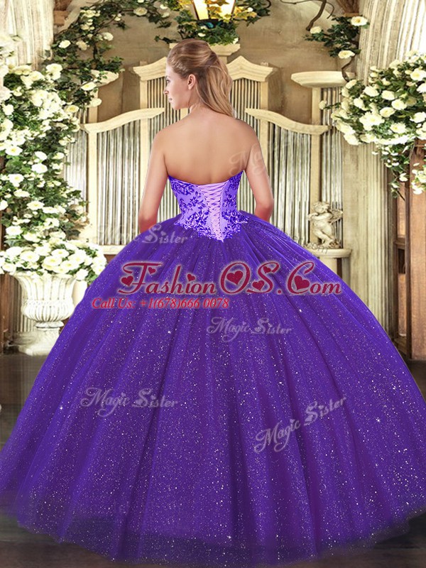 Exceptional Tulle and Sequined Sleeveless Floor Length Sweet 16 Dress and Appliques
