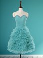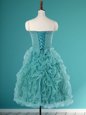 Exceptional Turquoise A-line Organza Sweetheart Sleeveless Beading and Ruffles Mini Length Lace Up Prom Dress