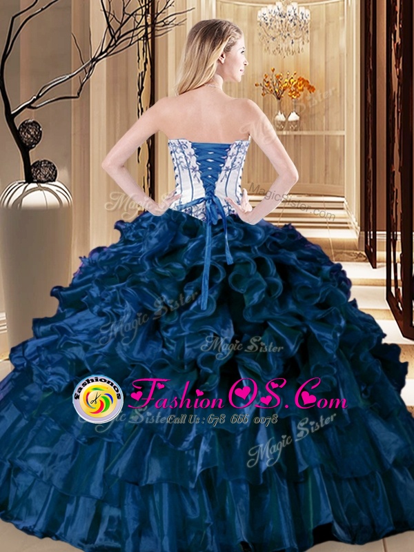 Exceptional Turquoise Ball Gowns Ruffles and Ruffled Layers Quinceanera Gown Lace Up Organza Sleeveless Floor Length