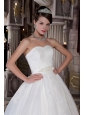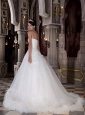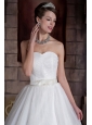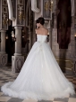 Exclusive A-line / Princess Sweetheart Court Train Satin and Feather Beading Wedding Dress