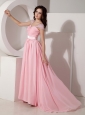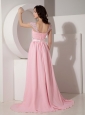 Home >  Evening Dresses > Exclusive Baby Pink Empire Sweetheart Evening Dress Chiffon Beading Brush / Sweep