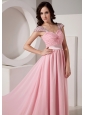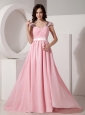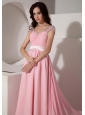 Exclusive Baby Pink Empire Sweetheart Evening Dress Chiffon Beading Brush / Sweep