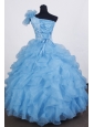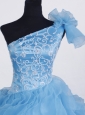 Exclusive Ball Gown Flower Girl Dress One Shoulder Floor-length Aqua Blue Organza Beading