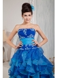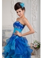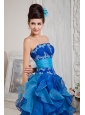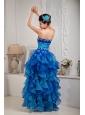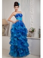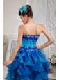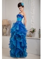 Home >  Prom Dresses >  Unique Prom Dresses > Exclusive Blue Empire Prom Dress Strapless Organza Appliques Floor-length