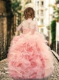 Exclusive Column Long Sleeves Prom Dress with Brush Train and Affordable Ruffled and Laced Little Girl Dress in Watermelon Red