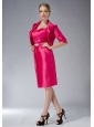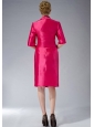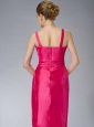Exclusive Coral Red Column Straps Knee-length Taffeta Beading Mother Of The Bride Dress