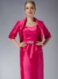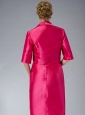 Home >  Special Occasion Dresses >  Mother of the Bride Dresses > Exclusive Coral Red Column Straps Knee-length Taffeta Beading Mother Of The Bride Dress