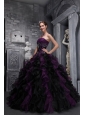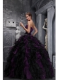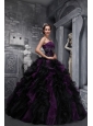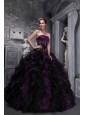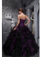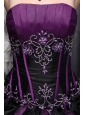 Home >  Quinceanera Dresses >  Discount Quinceanera Dresses > Exclusive Dark Purple and Black Quinceanera Dress Strapless Taffeta and Organza Appliques and Ruffles Ball Gown