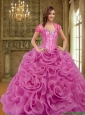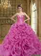 Exclusive Fuchsia 2015 Sweet 16 Dresses with Beading and Rolling Flowers