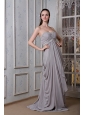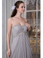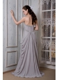 Exclusive Grey Empire Prom Dress Sweetheart Beading Brush Train Chiffon