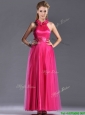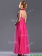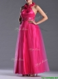 Exclusive Hot Pink Mother of the Bride Dress with Handcrafted Flowers Decorated Halter Top