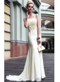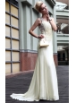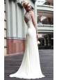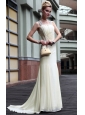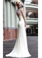Home >  Prom Dresses >  Discount Prom Dresses > Exclusive Light Yellow Column / Sheath Square Neck Court Train Chiffon Beading Prom Dress