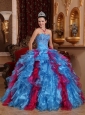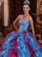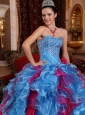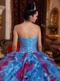 This colorful strapless sweetheart neckline quinceanera dress accented with many cute flowers and bead works throughout the bodice to creat a Grid lines.What's more,the asymmetrical pleated fabric on one side of the waist defines your unique taste. The fully ruffled skirt sways beautifully across the floor when you move, as if you're floating on air. A lace up corset style closure in the back secures the dress in place.
