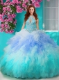 Exclusive Rainbow Halter Top Quinceanera Dress with Beading and Ruffles