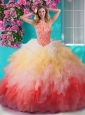 Home >  Quinceanera Dresses >  Discount Quinceanera Dresses > Exclusive Rainbow Halter Top Quinceanera Dress with Beading and Ruffles