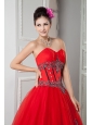 Exclusive Red Ball Gown Sweetheart Quinceanera Dresses Tulle Beading Floor-length