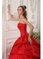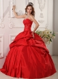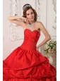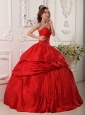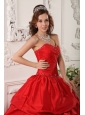 Exclusive Red  Quinceanera Dress Sweetheart  Beading Taffeta Ball Gown