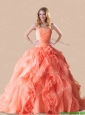 Exclusive Rolling Flowers Orange Red Quinceanera Dress with Brush Train