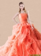 Home >  Quinceanera Dresses >  Popular Quinceanera Dresses > Exclusive Rolling Flowers Orange Red Quinceanera Dress with Brush Train