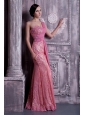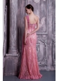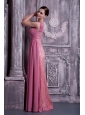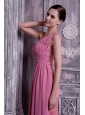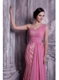 Exclusive Rose Pink Column Prom Dress One Shoulder Beading Chiffon Floor-length