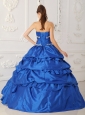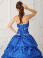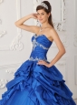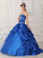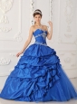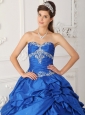 Exclusive Sapphire Blue Quinceanera Dress Sweetheart Taffeta and Tulle Appliques with Beading A-Line / Princess